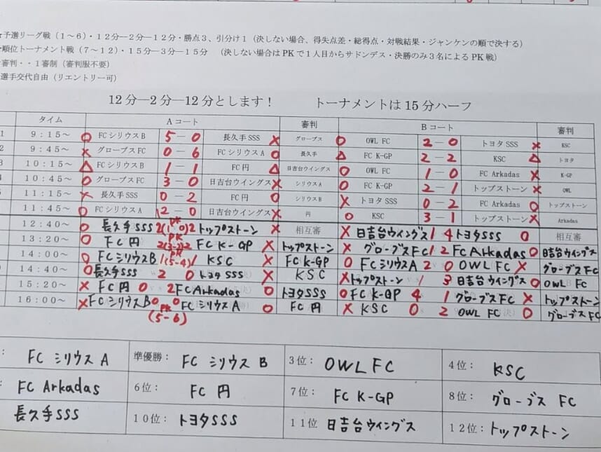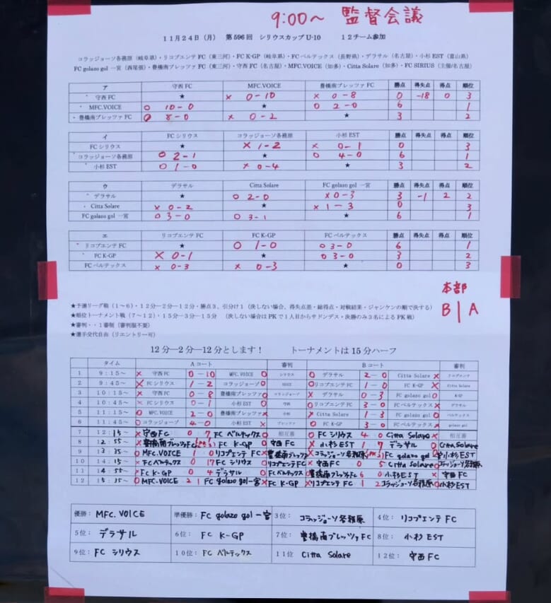 <2025年度シリウスカップまとめ・愛知 > 11/23,24 U-10の部はVOICE、U-12の部はシリウスAが優勝!次回12/6,7開催