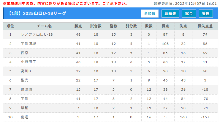 2025年度 高円宮杯U-18 JFA 山口県サッカーユースリーグ