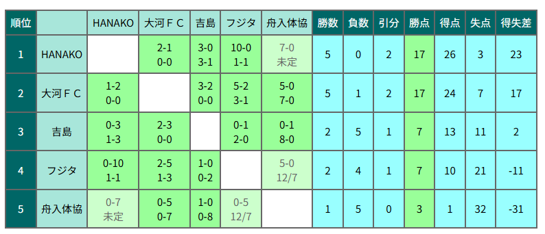 HANAKO、大河FC、フジタ、吉島、舟入体協