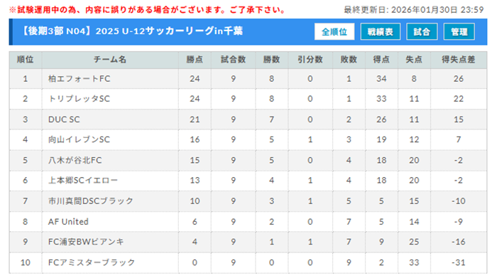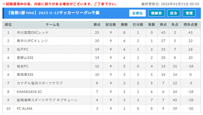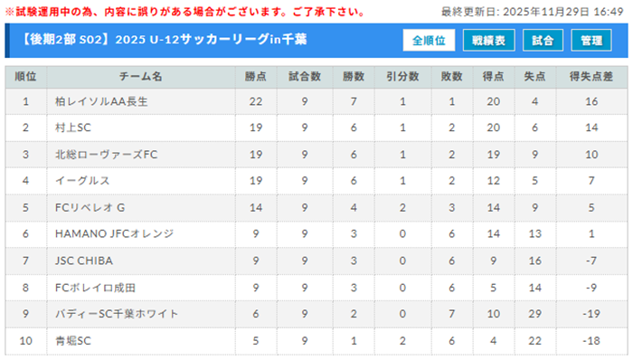 ※試合結果は千葉県サッカー協会 4種委員会の 結果速報掲示板 に随時反映されています。併せてご確認ください。