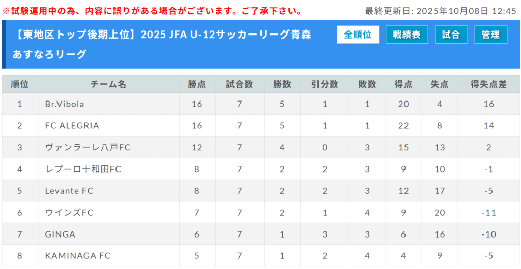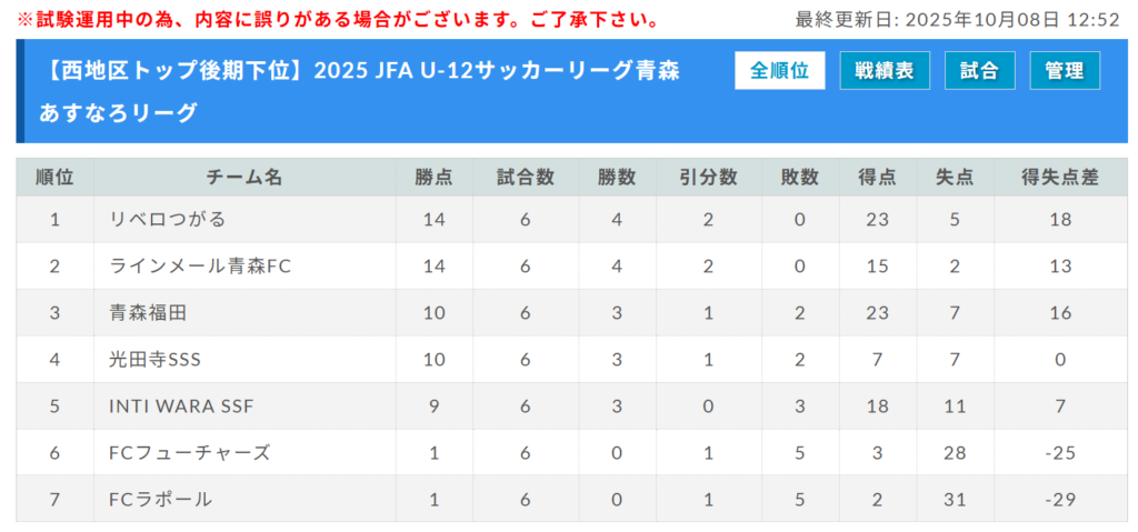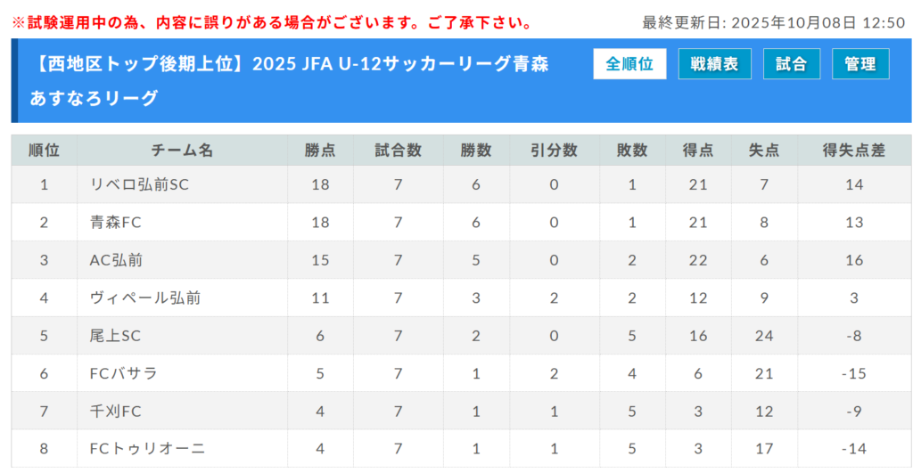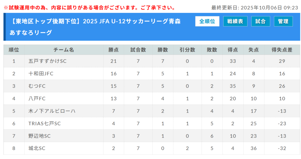 JFA U-12サッカーリーグ青森あすなろリーグ2025
