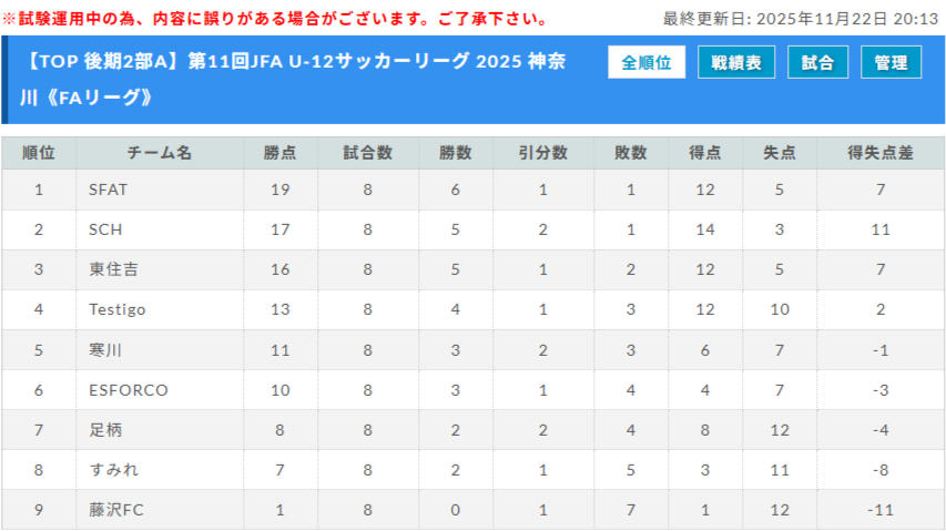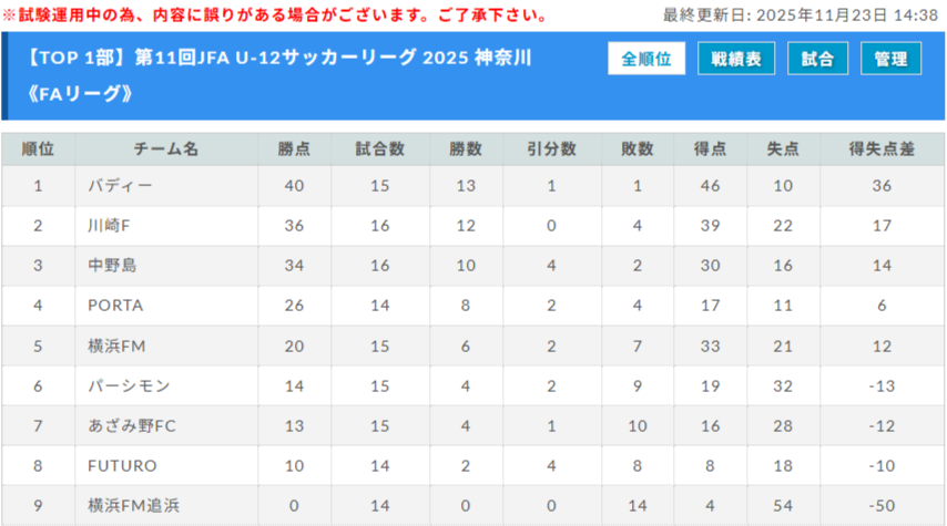 第11回JFA U-12サッカーリーグ 2025 神奈川《FAリーグ》TOPリーグ