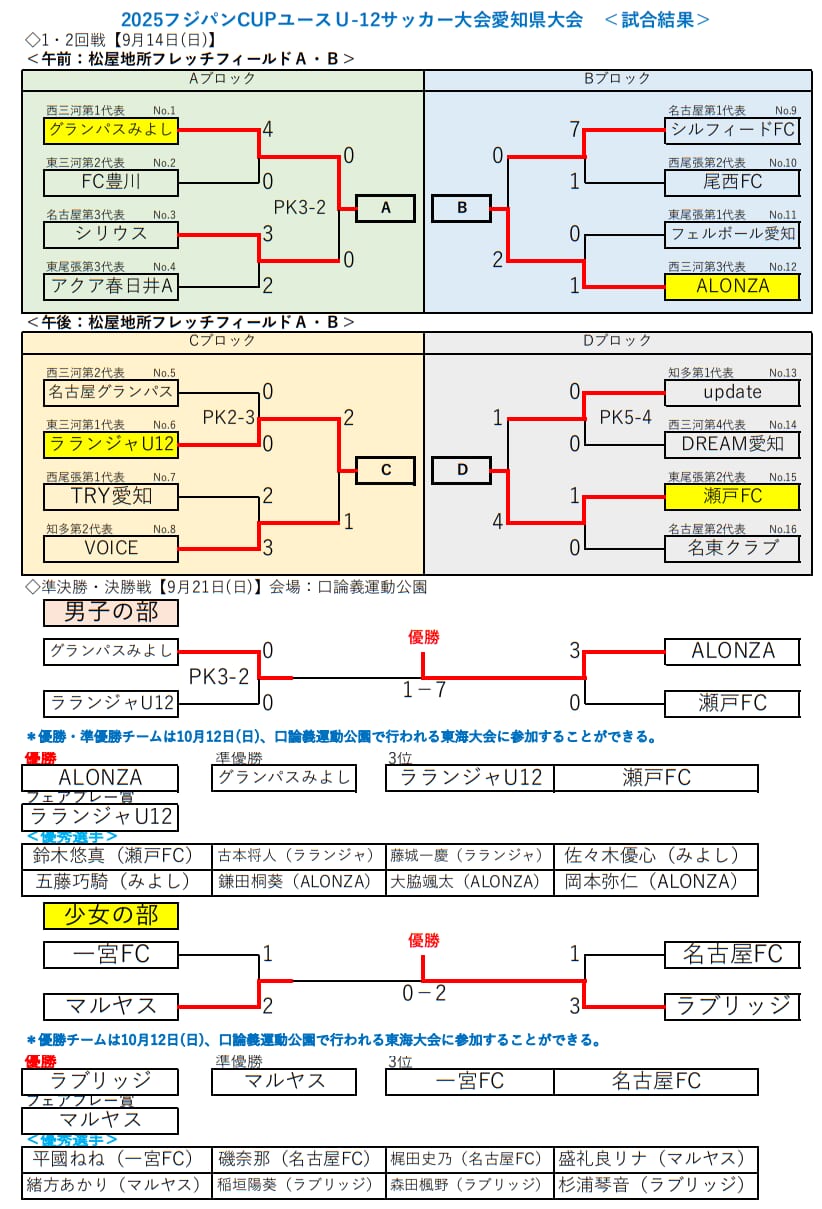 2025フジパンCUPユースU-12 サッカー大会愛知県大会(少女の部)