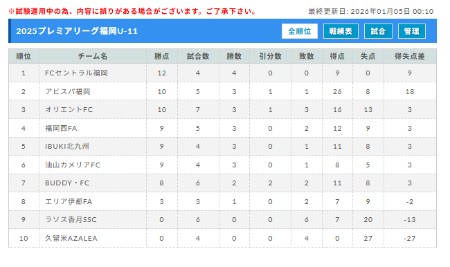 プレミアリーグ福岡U-11 12/21結果更新!