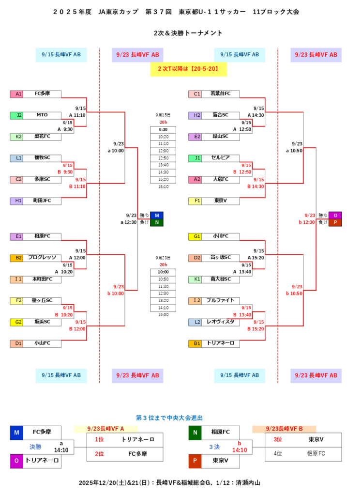 1位から3位までが中央大会へ進出中央大会:2024年12/20(土)21(日):長峰VF&稲城総合G、1/12:清瀬内山