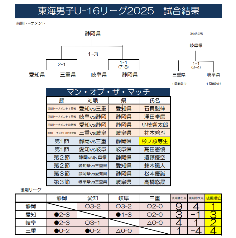 東海男子U-16リーグ2025(県選抜リーグ)