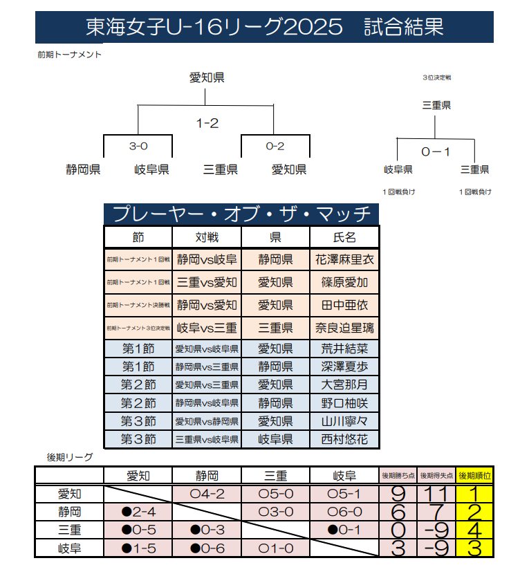 東海女子U-16リーグ2025(県選抜リーグ)