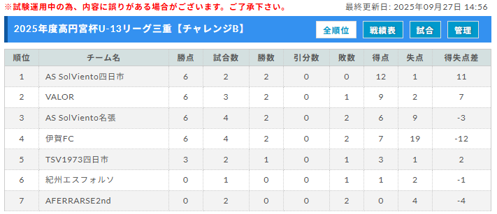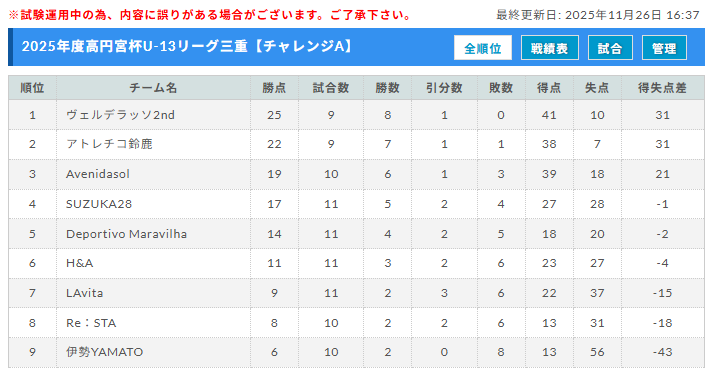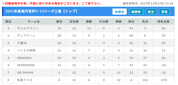 高円宮杯JFA U-13サッカーリーグ2025三重