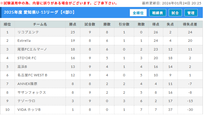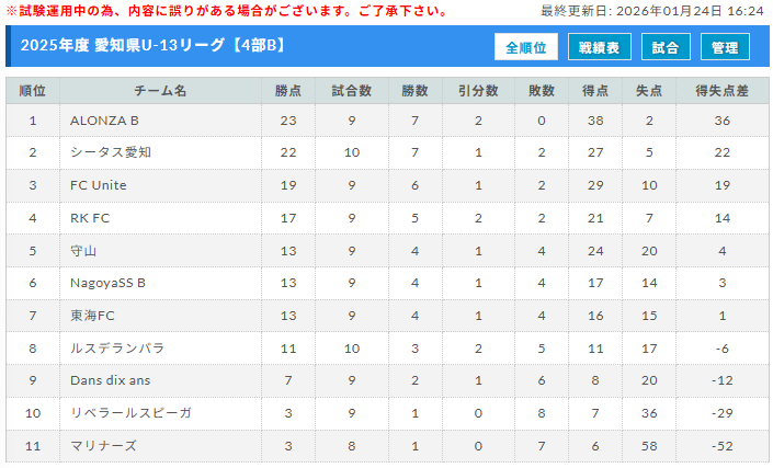 ・2025年度 愛知県U-13サッカーリーグ TOP・1部・2部