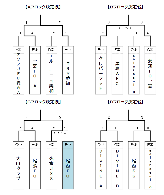 ・予選リーグ1位2位の16チームを4チームずつの4ブロックに分けてトーナメント戦を行い、各ブロック1位が西尾張代表の4チームとなる。