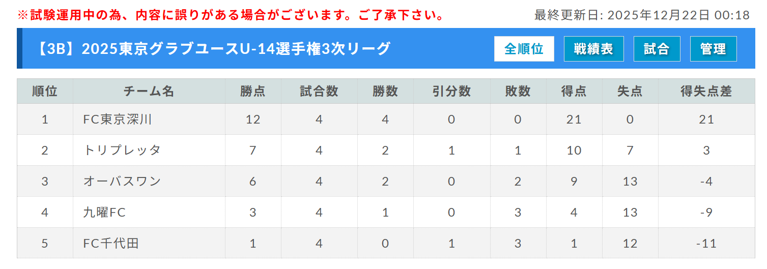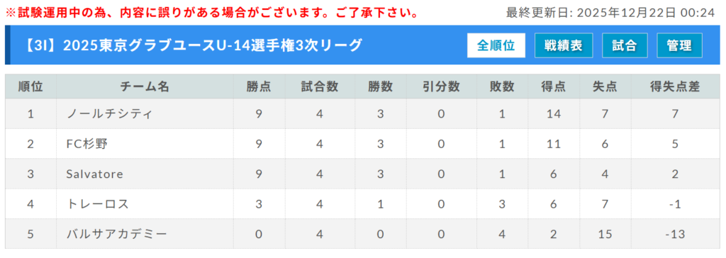 例年、今大会の成績により2026年度日本クラブユース選手権U15大会東京都予選のシードチームを決定しているが、2026 年度の大会方式に変更の可能性があるため、2026年度日本クラブユース選手権U15大会東京都予選のシードチーム決定方法は決定次第、通知する。