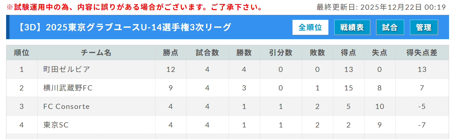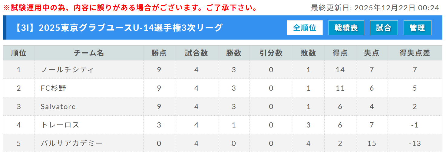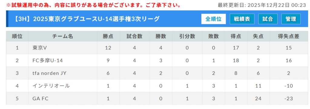 インテリオール、GA FC、tfa norden JY、FC多摩U-14、1位:東京V