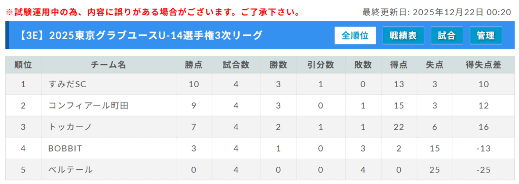 ベルテール、BOBBIT、トッカーノ、コンフィアール町田、1位:すみだSC