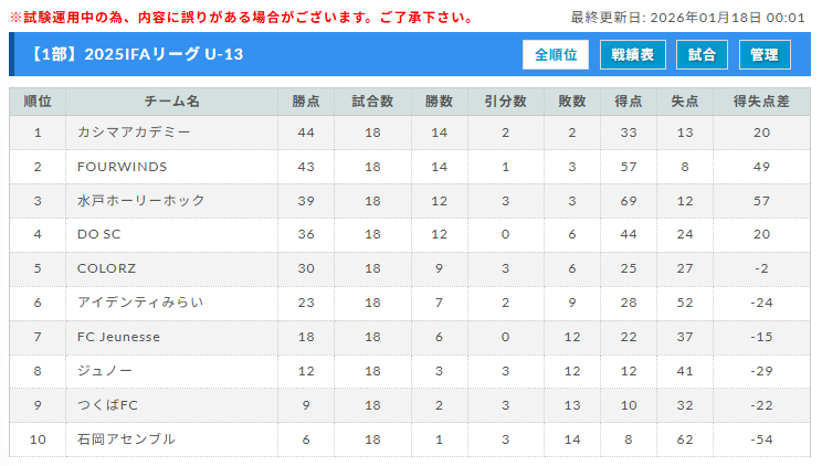 IFAリーグU-13 2024(茨城) 優勝はFC古河!最終結果掲載!