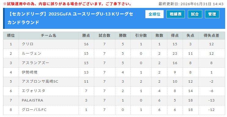 2025年度 GuFA ユースリーグU-13