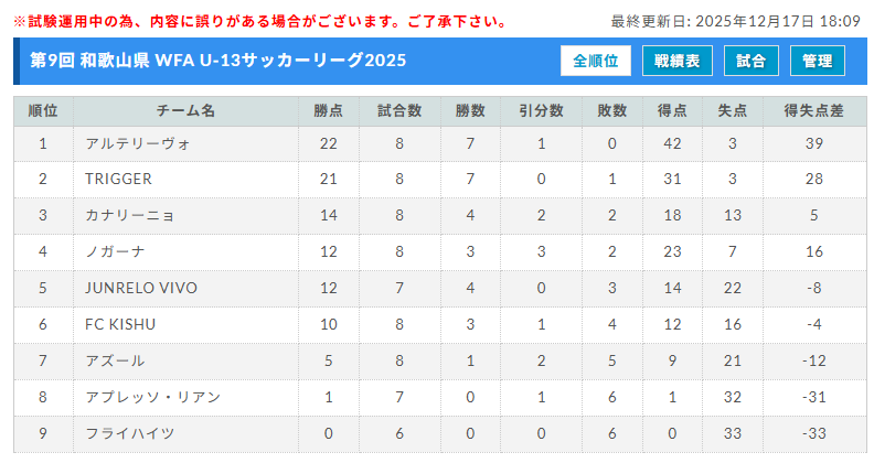 第9回 和歌山県 WFA U-13サッカーリーグ2025