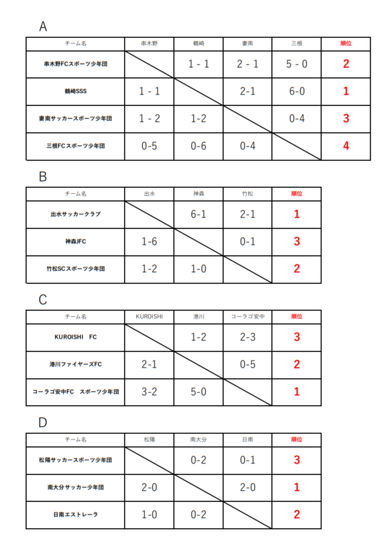 結果参照:出水サッカークラブ、コーラゴ安中FC