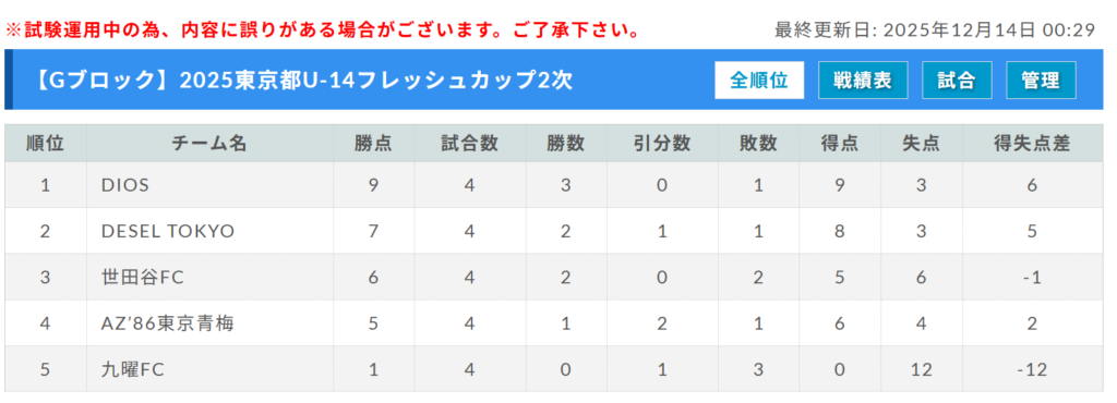 2025年度 東京都フレッシュカップU-14