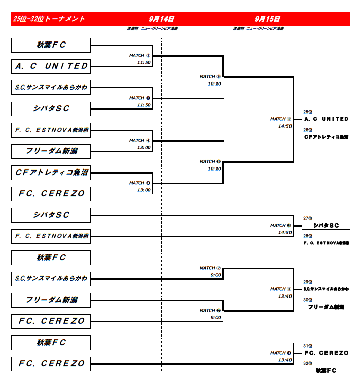 ②2024年度新潟県CYU13大会の成績を基に予選Lに振り分ける。