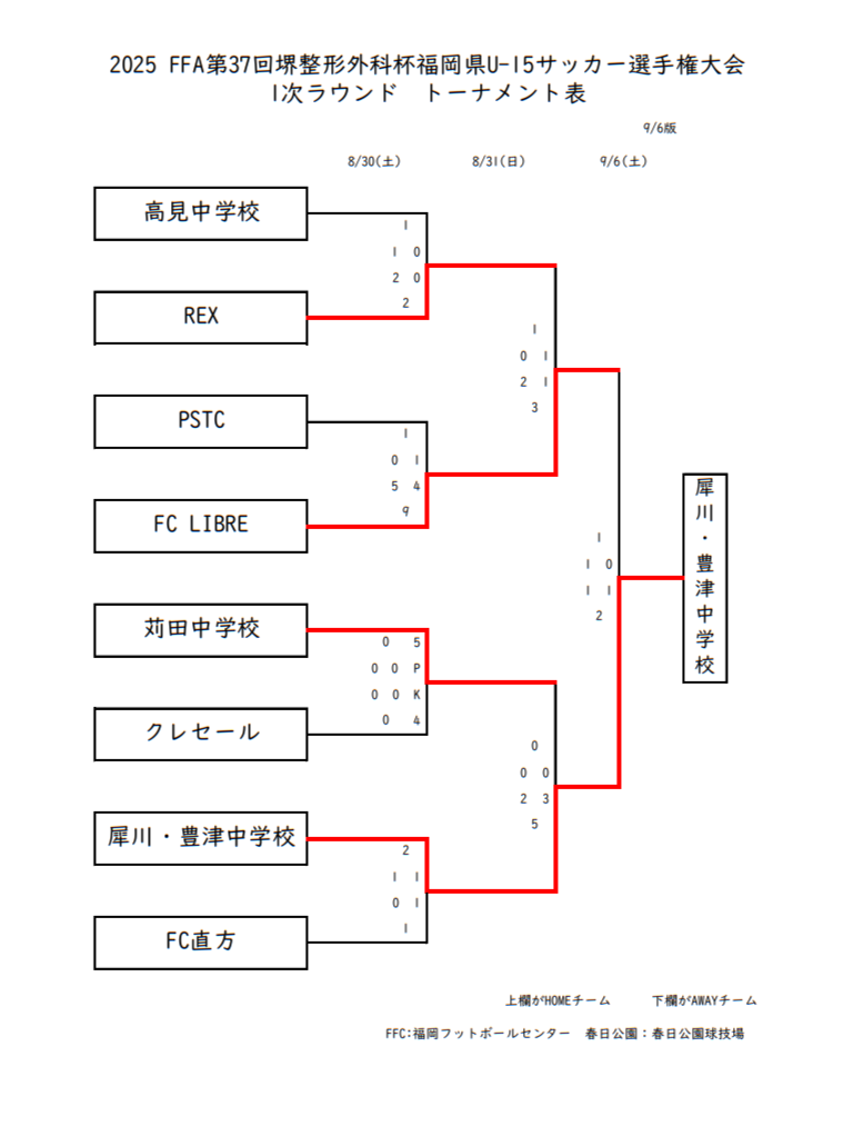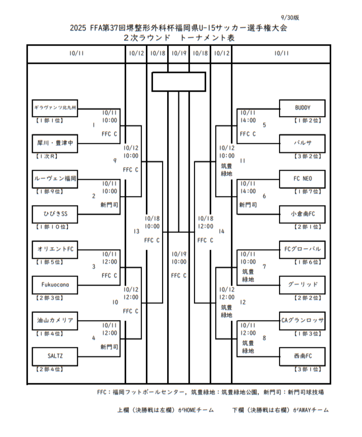 2025年度 FFA第37回堺整形外科杯福岡県U-15サッカー選手権大会 2次ラウンド組合せ掲載!10/11.12開催!