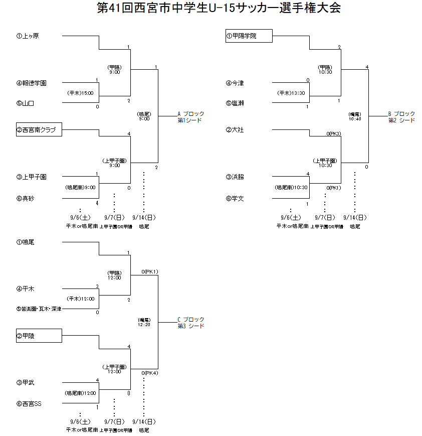 ・各ブロック優勝チームは、西宮地区代表 として9月に行われる兵庫県大会に出場する