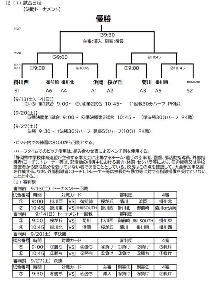 2025年度 第54回レッドウィング Honda CUP 中体連の部 兼 静岡県U-14新人大会 西部予選 組み合わせ掲載!情報提供ありがとうございます!開催日程募集