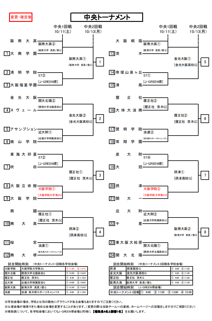 ⑥前大会(令和7年度大阪高校総体)ベスト4校は中央トーナメント1回戦シードとする。
