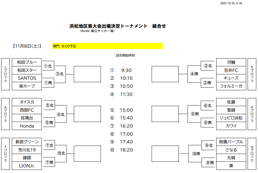 *同8チームは天竜東地区4チームとのHonda CUP決勝トーナメント出場