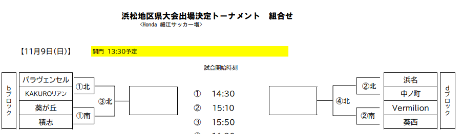 県大会出場決勝トーナメント:11月8日(土)、9日(日)