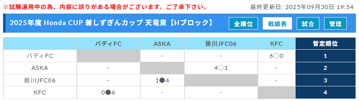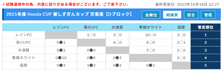 豊田南、浜岡黒潮ファンタ、ジュビロ磐田、浜岡黒潮オーシャン