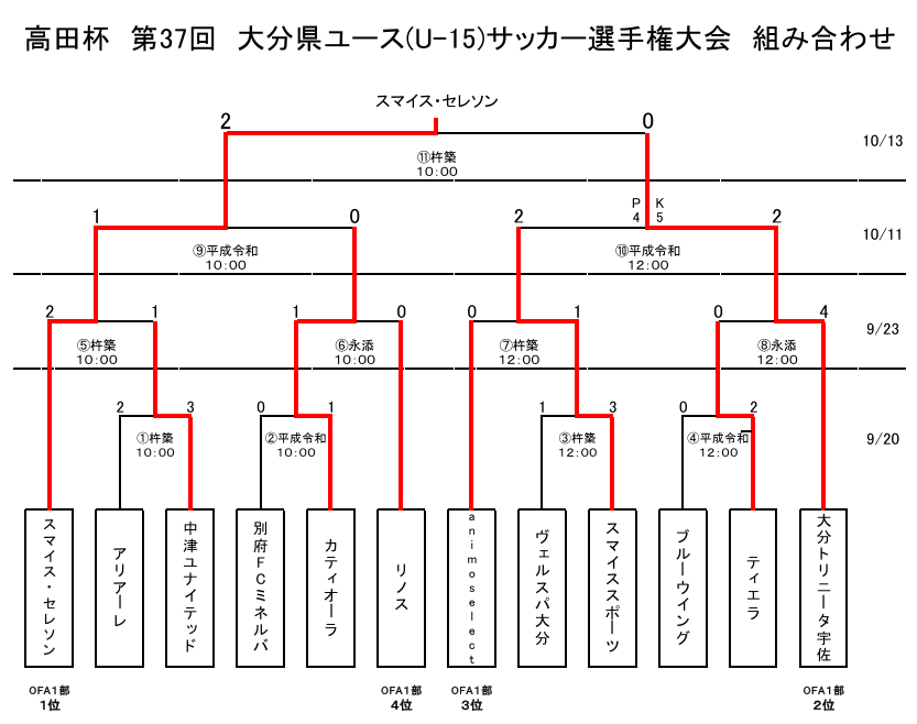 ※優勝チームは第36回九州ユース(U-15)サッカー選手権大会に出場する義務を負う。