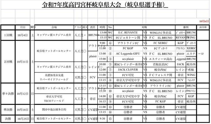 2025年度 高円宮杯JFA全日本U-15サッカー選手権大会 岐阜県大会
