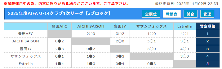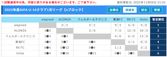 6位:FC Uniteoブロック【最終結果】11/3