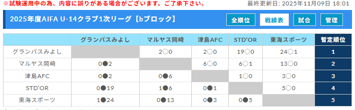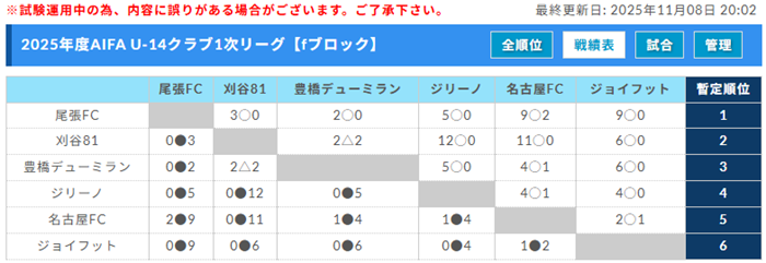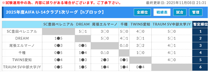6位:TRAUM SV中部大学JYiブロック【最終結果】11/3