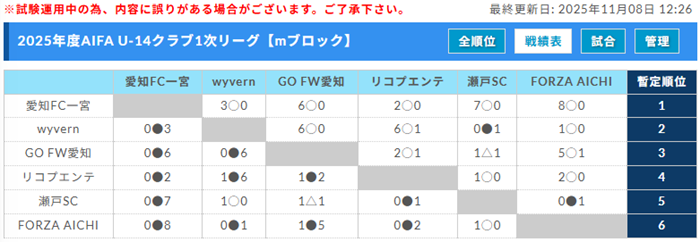 6位:蒲郡FCマリナーズmブロック 【最終結果】11/8