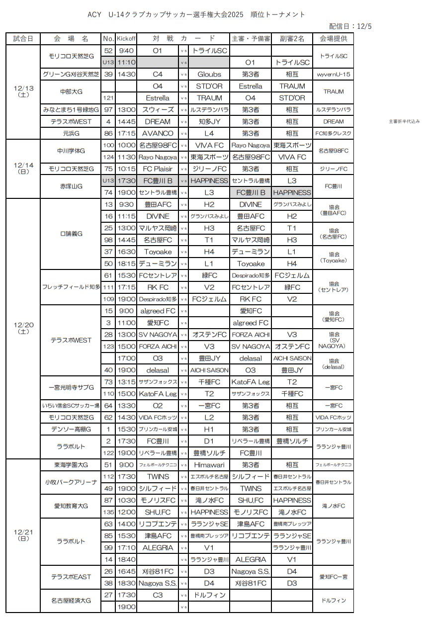 愛知県U-14クラブカップサッカー選手権