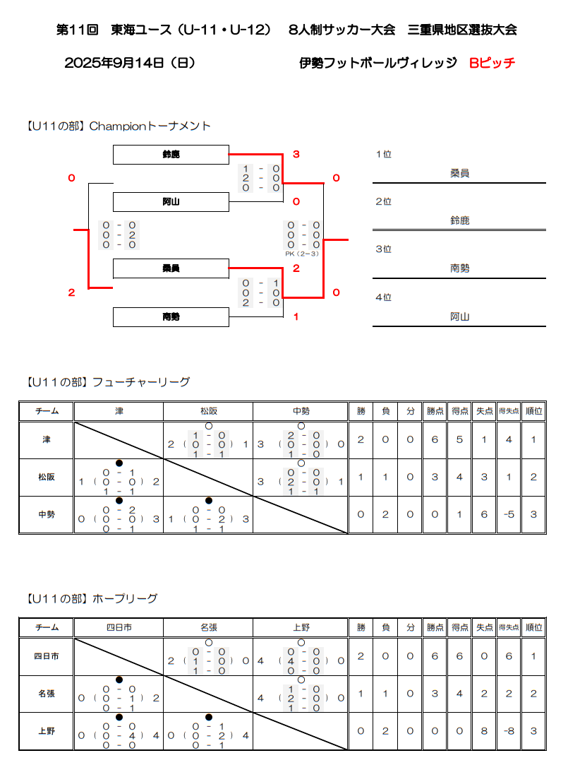 U-11は予選ブロックの順位同士によるトーナメント戦ならびにリーグ戦を行う。