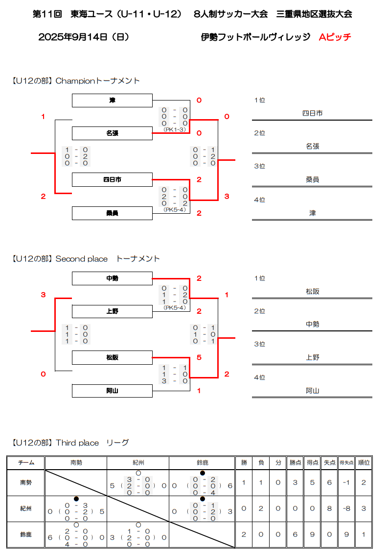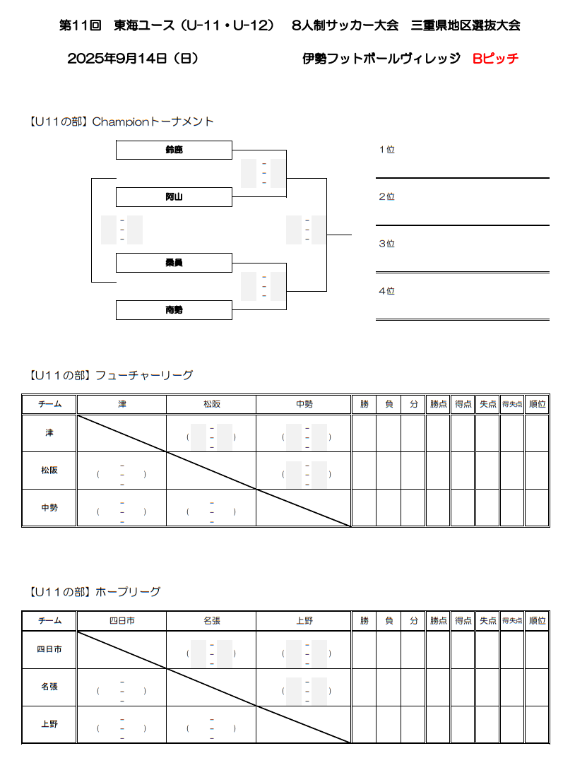 2025年度 第11回東海ユース(U-11・U-12)8人制サッカー大会 三重県地区選抜大会(トレセン対抗戦)