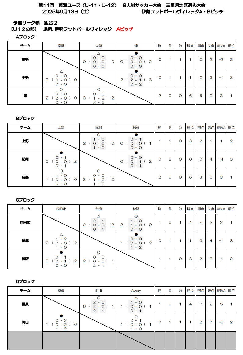 U-12は予選ブロックの順位同士によるトーナメント戦ならびにリーグ戦を行う。
