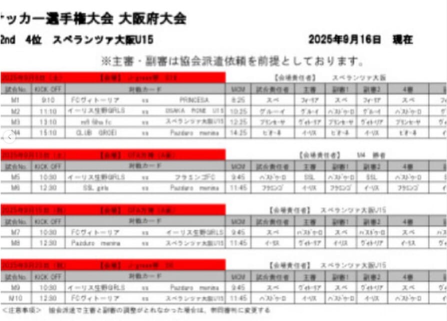 2025年度 JFA 第30回全日本U-15女子サッカー選手権大会 大阪府大会