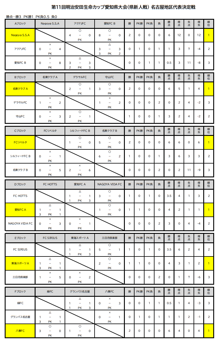 ・名古屋地区 U-11リーグ前期 【Aブロック 1 位】 は第 1 代表として県大会へ出場する。
