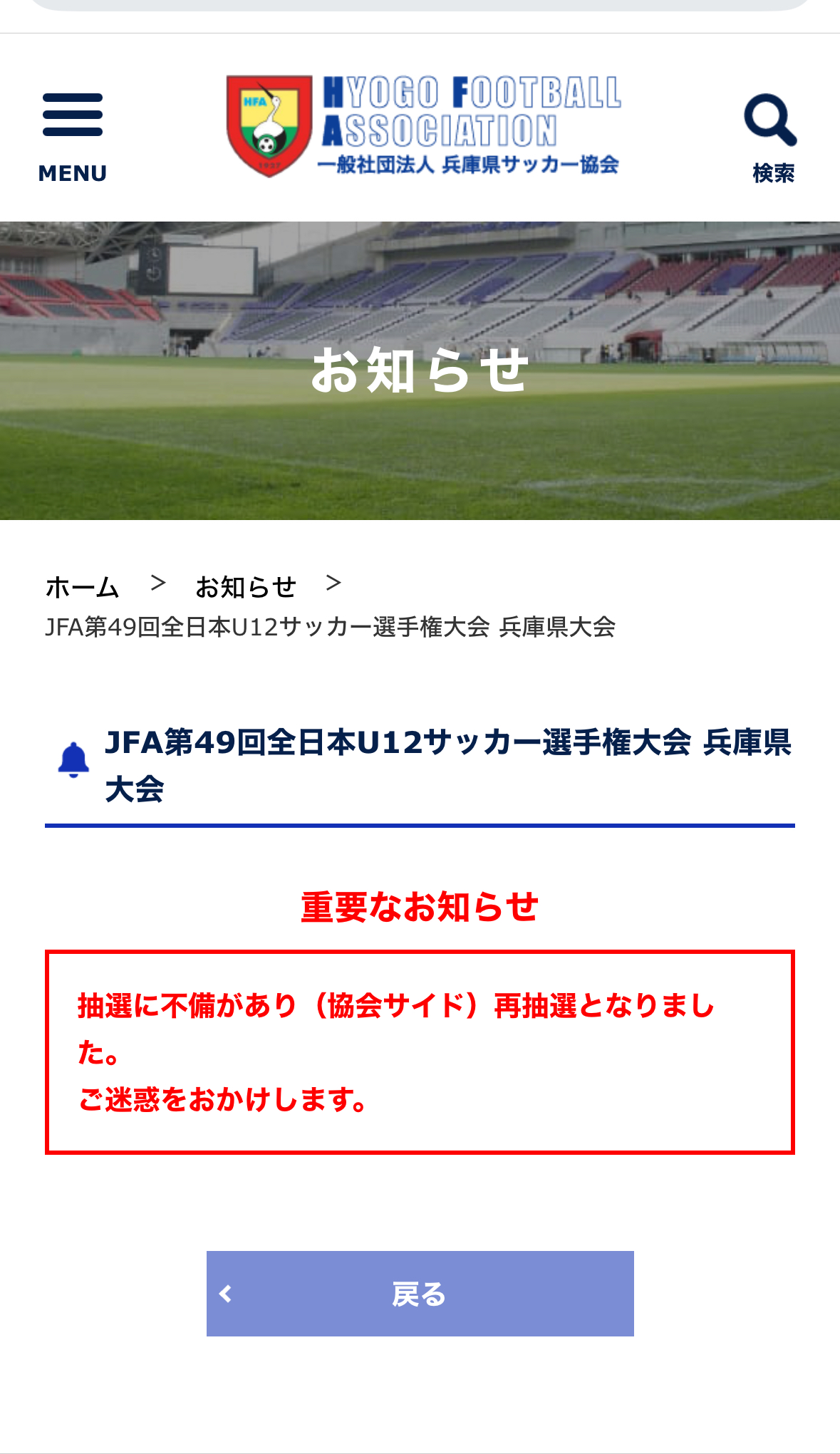 掲載していた組合せを削除し、再抽選の旨掲載いたしました。