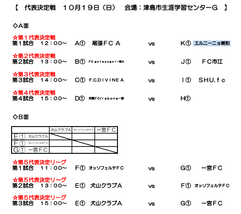 第5代表決定リーグ(犬山クラブA、オッソフェルテFC、一宮FC)