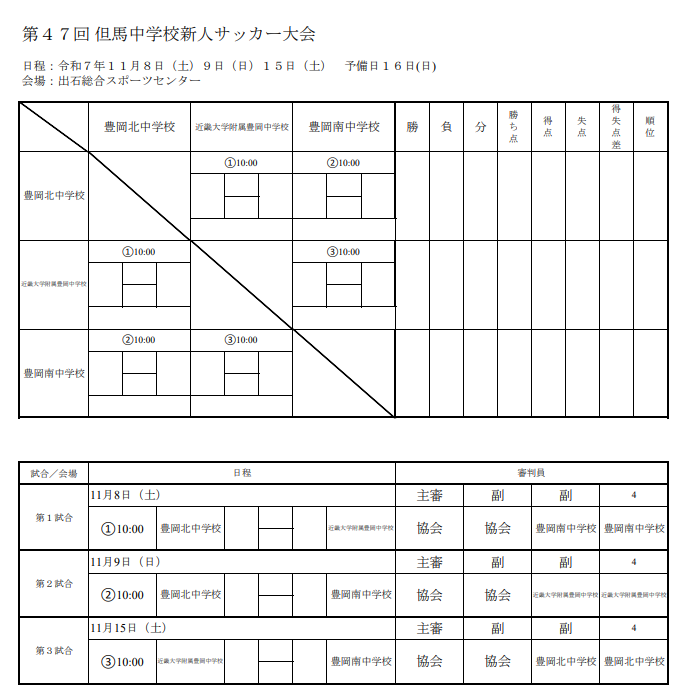 西播磨中学校新人大会サッカー競技大会 10/11.12