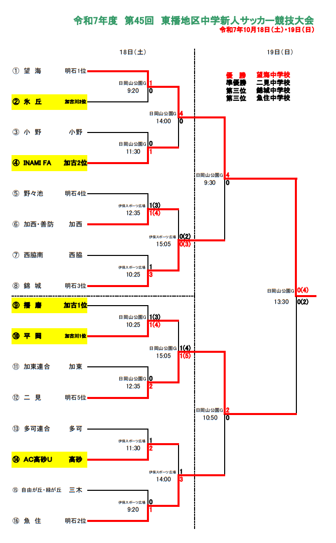 上位2チームは例年12月上旬に行われる 第44回兵庫県中学校サッカー新人大会に出場する