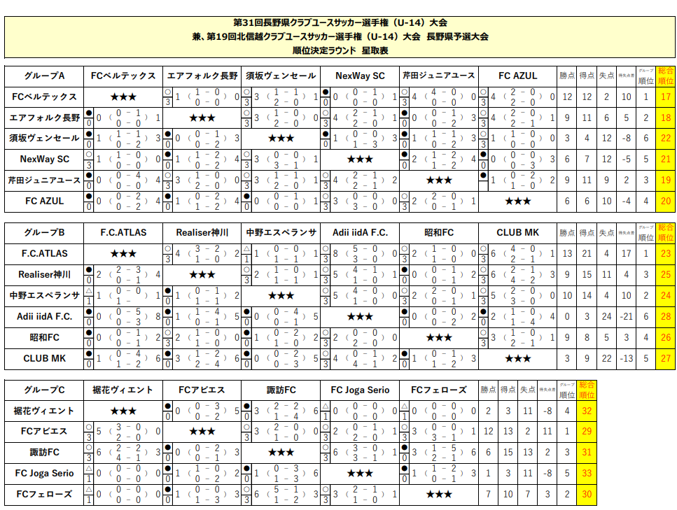 2024年度 第30回 ⻑野県クラブユースサッカー選⼿権(U-14)⼤会 ⻑野県予選会 優勝はフォルツァ松本!北信越大会、フェスティバル出場チーム決定!たくさんの情報提供ありがとうございます