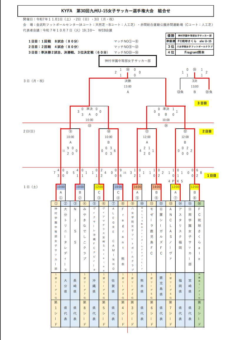 ・優勝以下第4位までのチームは、高円宮妃杯JFA第30回全日本U-15女子サッカー選手権大会への出場資格と義務を得る。 (2025年12月6日(土)~ 12月26日(金) 味の素フィールド西が丘ほかにて開催)