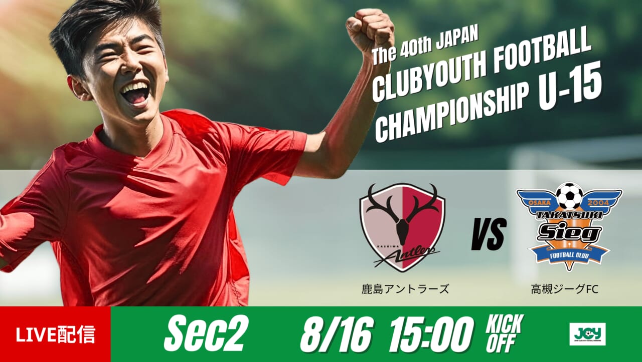 動画結果速報【鹿島アントラーズ vs 高槻ジーグFC】完封勝利 グループステージ 第2節 日本クラブユースサッカー選手権U-15