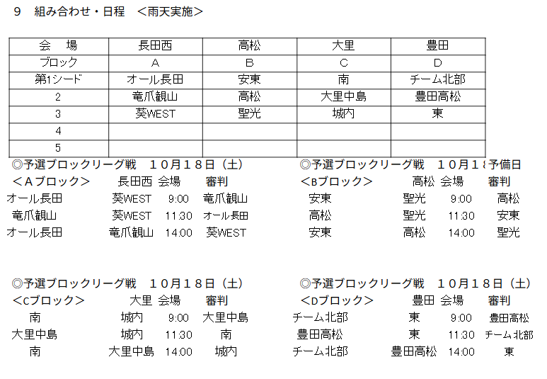 予選リーグ:10月18日(土)~19日(日)