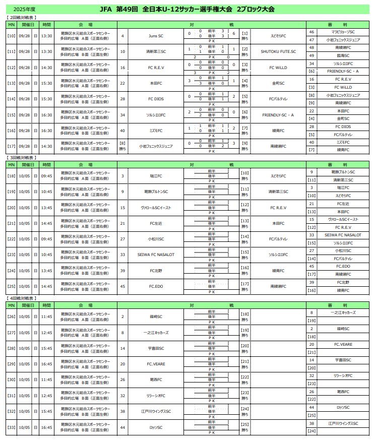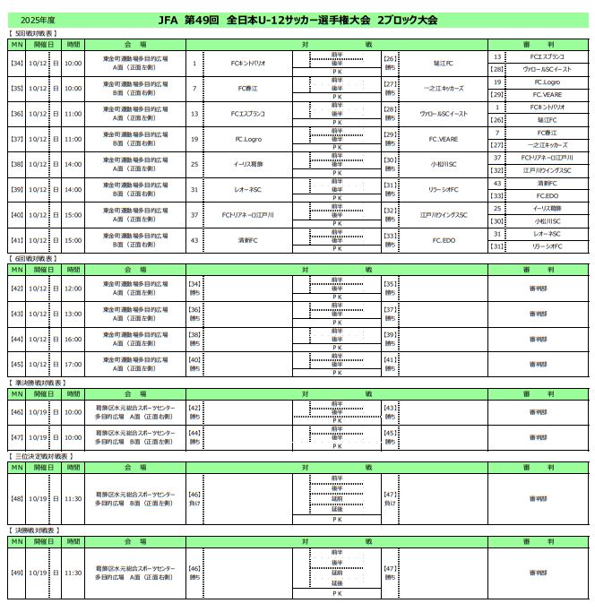 2025年度 JFA第49回全日本U-12サッカー選手権大会 東京大会第2ブロック